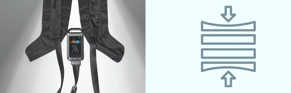 Kompresjonsbukser er designet ikke bare for å forbedre restitusjonen etter muskelskader og lindre smerte, men også for å fremskynde restitusjonen fra muskelsår og forberede bena for fremtidige treningsøkter. Apparatet er ideelt for lymfedrenasje og forbedring av blodsirkulasjonen, fettreduksjon og til detox.