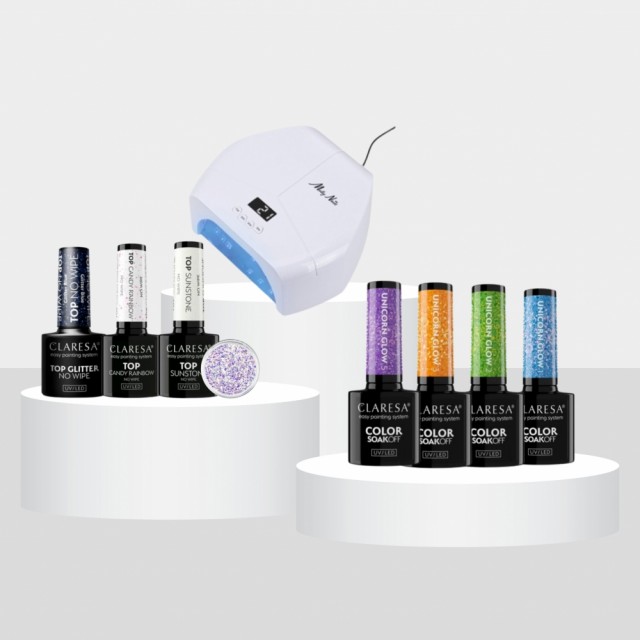 Neglelakk, Hybrid (SoakOff), 5ml Claresa® UNICORN GLOW 01 Antall: 1 Unicorn Glow-kolleksjonen er en kombinasjon av subtile, semi-transparente nyanser med partikler som bryter lyset og skaper en flerdimensjonal effekt. Les mer