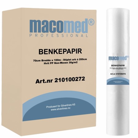 Macomed benkepapir, 50 ark pr rull, a 70x200cm (rullen er ferdig "stiplet" for hver 200cm, slik at hver lengde enkelt rives av)