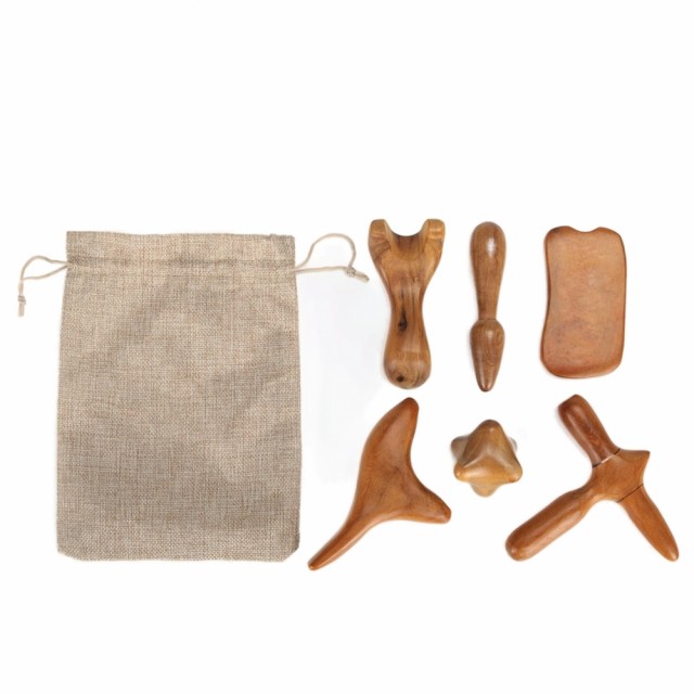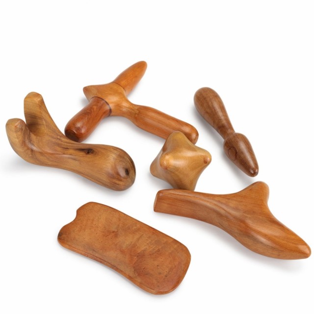 Settet inneholder 6 manuelle massasje verktøy i tre som er ideelle for dyp massasje av armer, ben og rygg med sterkt trykk. De er laget utelukkende av naturlig sandeltre. Disse verktøyene gir utmerket støtte til terapeutens arbeid uten å belaste hendene for mye. Deres spesielle former og konturer gir presis stimulering og når dypt forankrede punkter i kroppen. Verktøyene er pakket i en estetisk og praktisk linpose med snøring.
