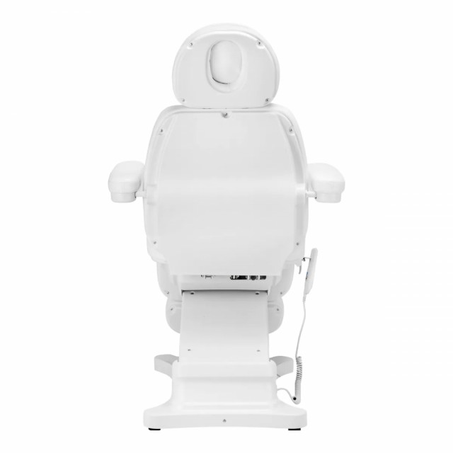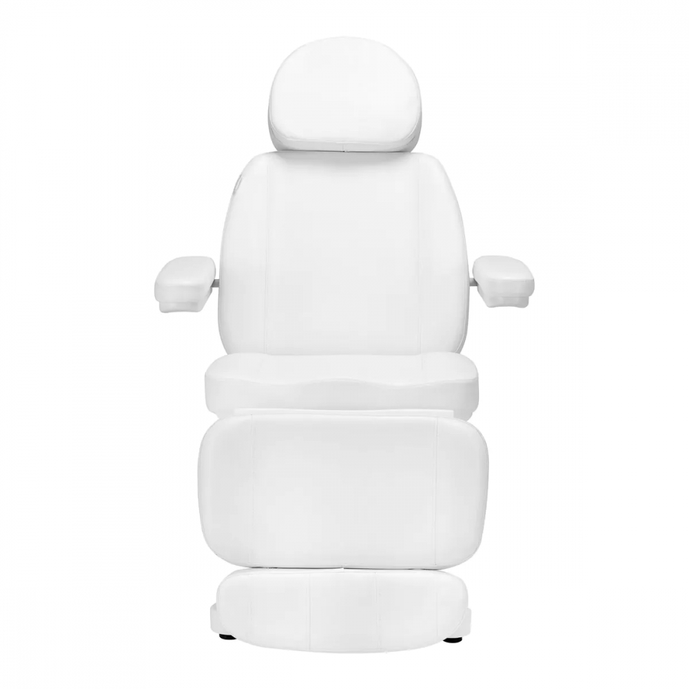 Ved hjelp av en brukervennlig fjernkontroll justeres stolen jevnt i tre plan – den er justerbar i høyde, ryggstøtte og fotstøtte. Setehøyden kan justeres fra 61 cm til 84 cm, og når den er helt utstrakt, når stolen en lengde på 2 m. Disse dimensjonene gjør det enkelt for personer i ulik høyde å bruke utstyret og tilpasse det til den aktuelle behandlingen og individuelle behov, noe som påvirker både brukerens og personens komfort. Håndtakene på begge sider av setet gjør det mulig å henge fjernkontrollen opp slik at den alltid er for hånden. Stolen er utstyrt med ryggstøtte og setevarme. Denne funksjonen støtter effektivt og gjør massasjebehandlingene mer behagelige, noe som øker komforten under massasjen. Oppvarming bidrar til å utvide blodårene, noe som kan øke blodstrømmen til området som behandles, noe som kan forbedre effektiviteten til mange kosmetiske behandlinger. Den uttrekkbare hodestøtten bidrar til å tilpasse utstyret til behovene til brukere i ulik høyde, og gir stabil hodestøtte under behandlinger. Det er også mulig å justere forlengelsen av fotstøtten, noe som er spesielt nyttig under prosedyrer utført på høyere personer, noe som gir dem bedre støtte. Armlenene er bevegelige innenfor 180º, noe som gjør det enklere å sette seg i stolen og gir komfortabel tilgang for personen som utfører prosedyren. De kan enkelt og raskt fjernes om nødvendig. Det brede setet vil sikre komfort under lange behandlinger. Den riktige måten å forme skummet på gir stolen en ergonomisk form. Det gjør at kroppen kan plasseres komfortabelt i den, noe som sikrer høy komfort og tilstrekkelig støtte for ryggraden. Utstyret kan foldes ut til en benkposisjon, og takket være åpningen i nakkestøtten skjult under puten, er den også perfekt for ryggbehandlinger eller massasjer. Materialet som brukes gjør utstyret enkelt å rengjøre, samt motstandsdyktig mot fuktighet og utvalgte desinfeksjonsmidler. En solid base laget av slitesterkt hvitt materiale sikrer stabilitet under behandlinger. Korrekt profilerte kanter gir stolen et stilig utseende og gjør setet ergonomisk. Minimalistisk, enkel design og klassiske farger gjør at den passer inn i ethvert interiør. Settet inkluderer: sete med base, kablet fjernkontroll, hodestøttepute og strømforsyning.
