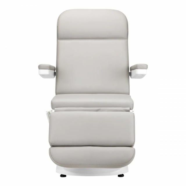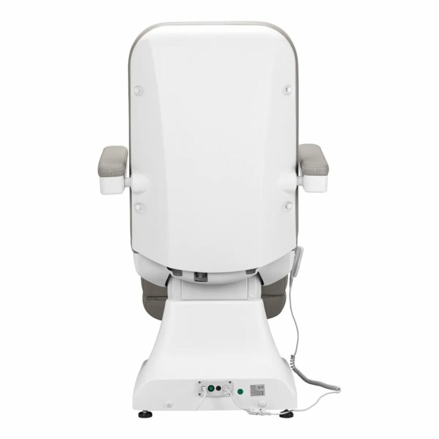 Ved hjelp av en enkel, intuitiv fjernkontroll kan stolen justeres jevnt i tre plan – den har justerbar setehøyde og rygg- og fotstøttevinkler. Dette lar deg fritt stille inn posisjonen som passer til prosedyren som utføres i et gitt øyeblikk, noe som påvirker komforten til både brukeren og personen som utfører behandlingen. Setehøyden er justerbar fra 61 cm til 92 cm, og når den er helt utstrakt, når stolen en lengde på 190 cm. Disse dimensjonene gjør at utstyret enkelt kan brukes av personer i ulik høyde og gjør det mulig å tilpasse det til behovene til både klienten og personen som utfører prosedyren. Håndtakene på begge sider av setet lar deg henge fjernkontrollen fritt slik at den alltid er for hånden. Det brede setet sikrer komfort under lange behandlinger. Armlenene er bevegelige, de kan stilles i vertikal posisjon eller vippes 180º, noe som gjør det enklere å sette seg i stolen og gir komfortabel tilgang for personen som utfører prosedyren. De kan enkelt og raskt fjernes om nødvendig. Muligheten til å folde ut utstyret fritt til en sofaposisjon øker funksjonaliteten betydelig for både ansikts- og kroppsbehandlinger. Dette lar deg enkelt utføre ulike typer behandlinger, inkludert kosmetikk, fysioterapi og tatovering. Fotstøtten forlenges med maksimalt 15 cm, noe som bidrar til å tilpasse utstyret til behovene til brukere i ulik høyde, og sikrer stabil benstøtte under ulike behandlinger. Løsningene som brukes forbedrer brukerkomforten og arbeidsergonomien betydelig. Stolen er fylt med skum med passende hardhet og trukket med behagelig imitert skinn i grånyanser. Takket være bruk av et materiale som er lett å holde rent og motstandsdyktig mot utvalgte desinfeksjonsmidler, er utstyret komfortabelt å bruke, motstandsdyktig mot fuktighet og lett å rengjøre. En solid base laget av slitesterkt hvitt materiale sikrer stabilitet under behandlinger. Korrekt profilerte kanter gir stolen et stilig utseende og gjør setet ergonomisk. Settet inkluderer: sete med base, kablet fjernkontroll, strømforsyning.