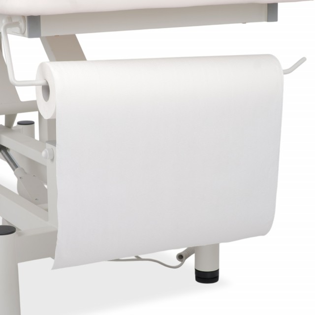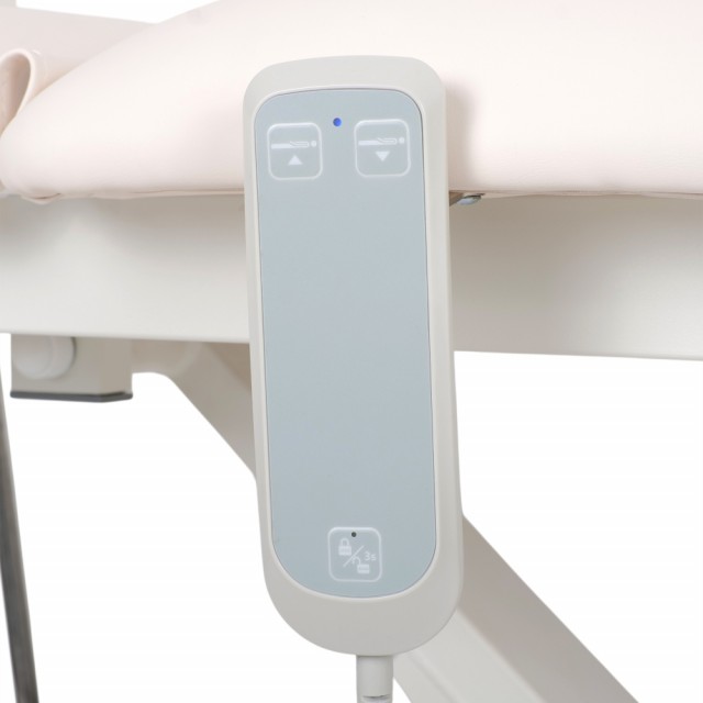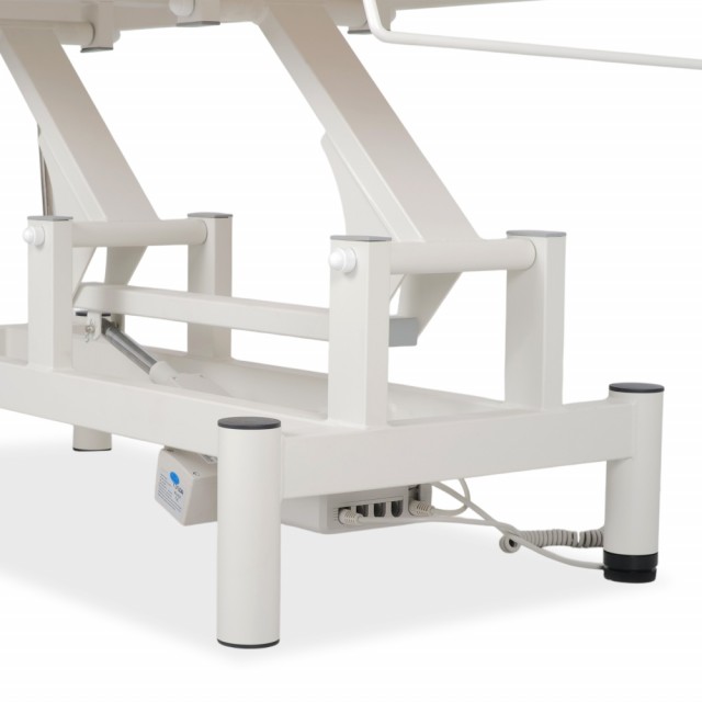 Elektrisk høydejustering: Optima-benken er utstyrt med en stillegående, sertifisert elektrisk aktuator som muliggjør presis høydejustering fra 49 cm til 86 cm, noe som sikrer komfortable arbeidsforhold for terapeuten og maksimal komfort for pasienten.