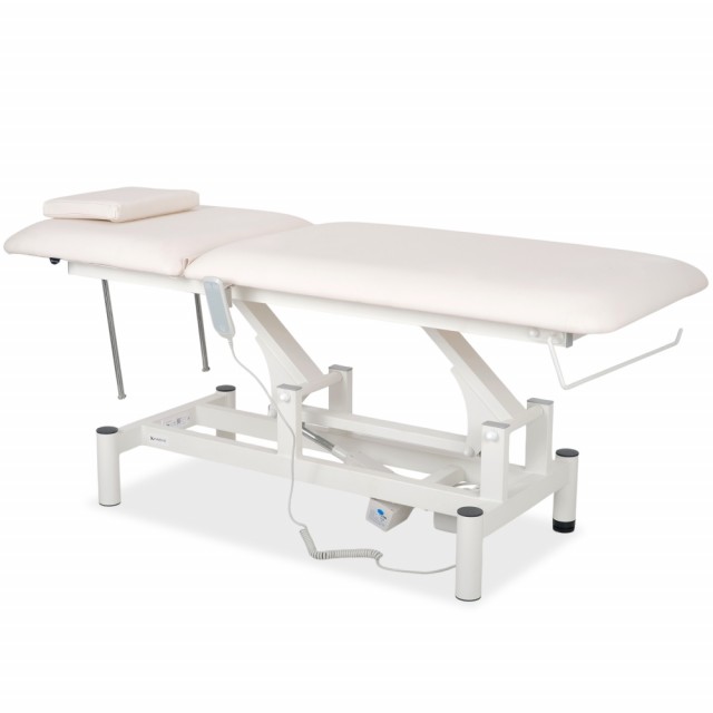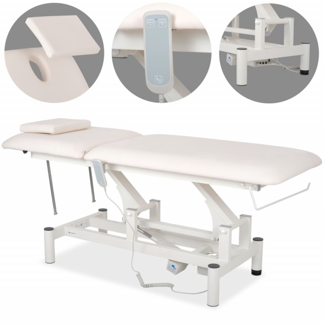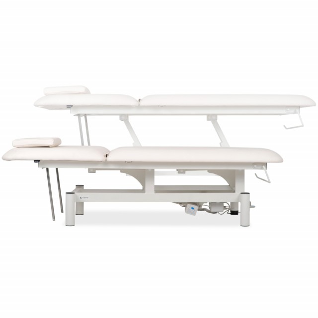 2-delt bordplate: Den komfortable liggeflaten som måler 182 × 68 cm består av to seksjoner: en nakkestøtte og hovedbordplaten. Den justerbare nakkestøtten muliggjør riktig posisjonering av nakkesøylen.
