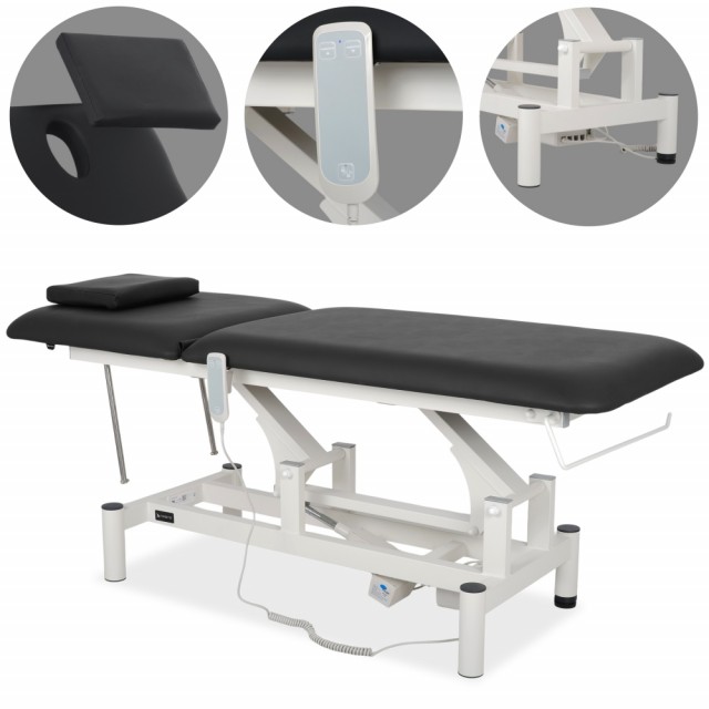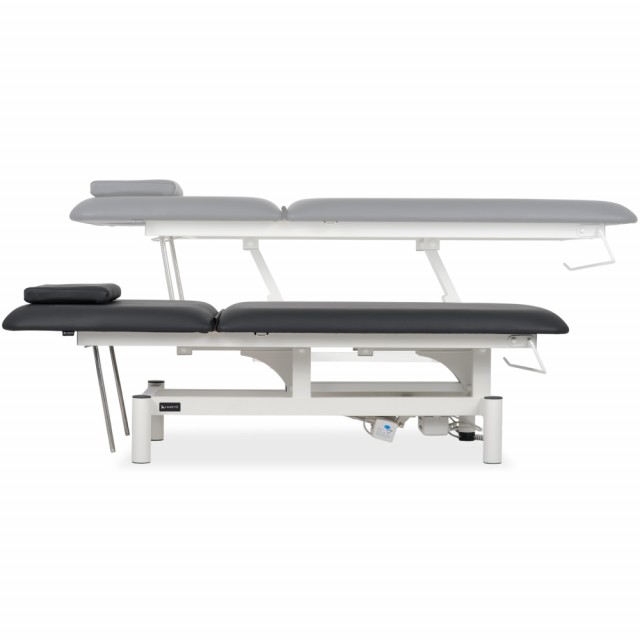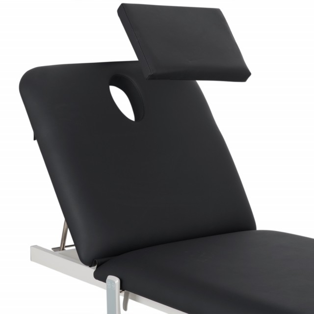 2-delt bordplate: Den komfortable liggeflaten som måler 182 × 68 cm består av to seksjoner: en nakkestøtte og hovedbordplaten. Den justerbare nakkestøtten muliggjør riktig posisjonering av nakkesøylen.