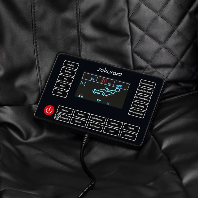 Stolen leverres med kontrollpanel som kan plasseres på håndtaket montert på høyre armlen, eller bare holdes i hendene. Dette gjør bruken enkel, og du kan overvåke driften av enheten på den klare LCD-skjermen. Områdene på kroppen hvor massasjen utføres, dens intensitet, behandlingstid og det valgte programmet vises tydelig. Panelet lar deg fritt justere stolinnstillingene og massasjefunksjonene, samt stille inn behandlingens varighet, som kan vare 5, 10, 15, 20, 25 eller 30 minutter.