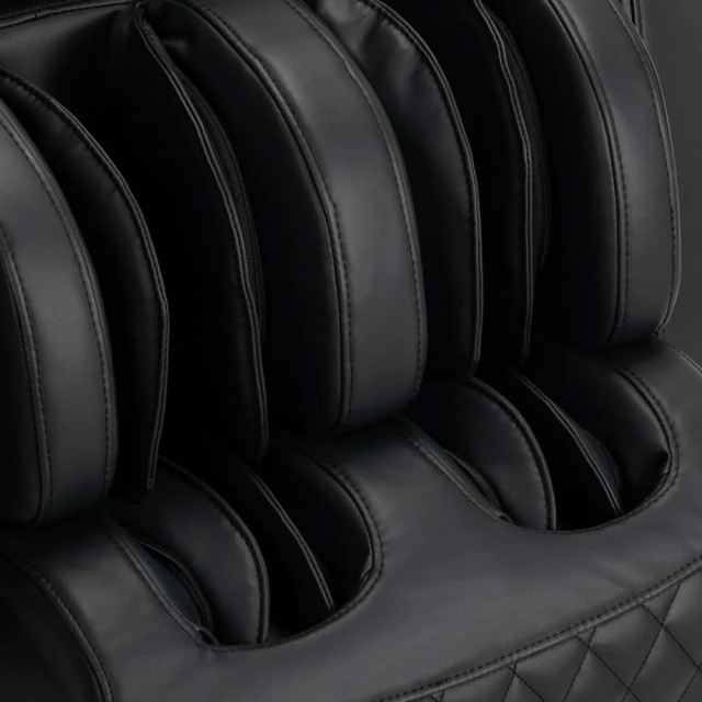 Et perfekt supplement til mekanisk massasje med hoder, er en kompresjonsmassasje ved hjelp av luftputer, som gir den såkalte lymfedrenasjen. Den pulserende bevegelsen av luftputer i området ved føtter, legger, baken, hender, skuldre og hode regulerer lymfestrømmen, letter avgiftningsprosessen og forbedrer blodsirkulasjonen. Dermed senkes blodtrykket, musklene blir bedre oksygenert, og kroppen kvitter seg lettere med giftstoffer. Denne behandlingen eliminerer spenninger og gir behagelig lindring for resten av dagen. Aktiviteten til putene kan justeres på kontrollpanelet. Denne modellen har en justerbar fotstøtte, slik at enhver bruker – uansett høyde – vil kunne finne en behagelig massasjestilling.