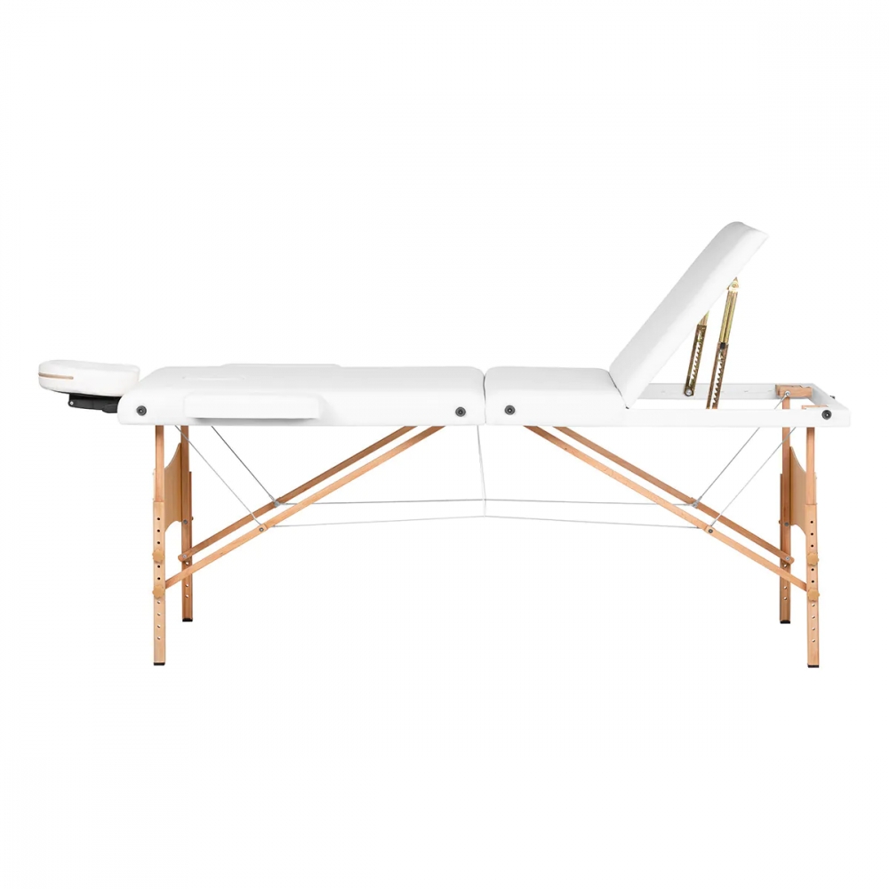 Takket være de kompakte målene, den lette vekten og den medfølgende vesken, er det også perfekt for mobilt arbeid – noe som gir rask og praktisk sammenleggbarhet og bæring. Bordhøyden kan tilpasses høyden og de individuelle behovene til personen som utfører behandlingen ved hjelp av knottene på bordbena i området 62–92 cm. Hvert ben består av to matchende elementer, og når ønsket høyde er valgt, skrur du bare delene inn i de riktige hullene for å sikre at bordet forblir stabilt. I tillegg er rammekonstruksjonen forsterket med metallkabler, noe som gjør massasjebordet solid og perfekt egnet for et bredt spekter av behandlinger.