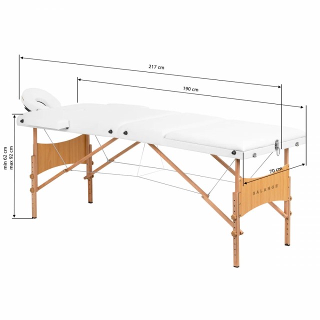 Den lette konstruksjonen gjør det enkelt å bære, noe som gjør bordet til et ideelt valg for mobilt arbeid. BALANCE-modellen brettes raskt og uanstrengt sammen og tar liten plass når den er sammenslått. Det er stropper under bordplaten for å sikre tilbehør for transport, slik at bordet enkelt kan flyttes når som helst. Settet inkluderer også en egen transportveske med skulderstropp og et håndtak – den beskytter bordet mot smuss og skader, og sikrer komfortabel bevegelse. BALANCE massasjebord er designet med tanke på komfort og holdbarhet. En bred bordplate gir betydelig mer plass og komfort, noe som skaper usedvanlig komfortable forhold for å utføre enhver behandling. Mykt imitert skinntrekk og et skumfyll med optimal fasthet sikrer komfort under behandlinger. Materialene er motstandsdyktige mot fuktighet, enkle å rengjøre og slitesterke, noe som gjør bordet perfekt for hverdagsarbeid. Rammen er laget av slitesterkt treverk, som ser flott ut i ethvert interiør og gir rommet en unik atmosfære. Fargen på produktet på bildet kan avvike fra den faktiske fargen på grunn av skjerminnstillinger og lysforhold. De nøyaktige målene er gitt på bildet. Settet inkluderer: massasjebenk, armlener, justerbar nakkestøtte, hylle foran for armlener, stikkontakt, bæreveske.