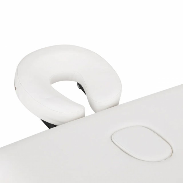For å sikre maksimal komfort kan personen som bruker bordet hvile hodet på den ergonomiske hodestøtten, som er inkludert i settet. Dette elementet er enkelt å justere – det gjør det mulig å justere vinkelen i to plan, noe som gjør det mulig å justere posisjonen nøyaktig til brukerens behov og behandlingens art. For ryggliggende behandling kan nakkestøtten fjernes ved å bruke et spesielt hull i bordplaten. Når hullet ikke er i bruk, kan det dekkes med den medfølgende pluggen, noe som gir overflaten et estetisk og ensartet utseende. Uansett hvilken type behandling som utføres eller hvilken stilling pasienten inntar, er riktig plassering av hendene viktig – noe som sikrer avslapning uten å hindre terapeutens arbeid.