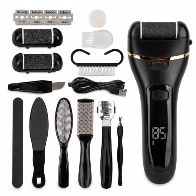 Høvelen har 3 hoder med forskjellige graderinger, slik at du kan velge dem i henhold til graden av keratinisering av epidermis. Det roterende slipe hodet vil effektivt fjerne fortykkelser og død hud. Utstyret har et ergonomisk håndtak og er battedrivet - trygt og smertefritt å bruke på huden. LED displayet lar deg velge mellom to-trinns hastighetsbryter, samt og vise batterinivået på maskinen.