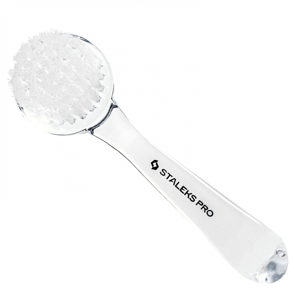 Børste for fjerning av støv under manikyr. Laget av slitesterk, gjennomsiktig plast som er motstandsdyktig mot slitasje, og syntetiske børstehår med optimal stivhet – rengjør effektivt uten å skade neglebåndet eller negleplaten. Praktisk, buet håndtak som hindrer at børsten glir i hånden. Utstyrt med en beskyttelseshette for hygienisk oppbevaring, som beskytter børstehårene mot deformasjon og gjør børsten enkel å transportere.