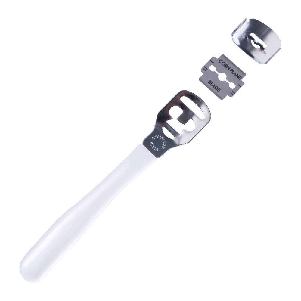 Omega fothøvel for hælhud, liktorn- og hard hud. Profesjonelt verktøy designet for pedikyrbehandlinger. Den har et perfekt profilert ergonomisk håndtak som lar deg bruke den fra forskjellige vinkler uten problemer. Produksjonsmaterialet - rustfritt stål av høy kvalitet - lar deg sterilisere Omega i en autoklav.