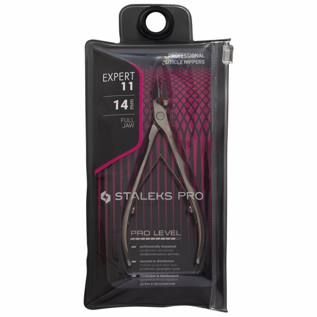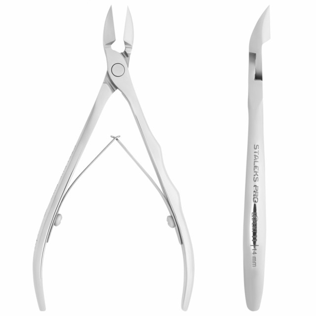 Profesjonell neglebåndsaks for hud, med bladlengde på 14 mm, og rette skjærekanter uten helling. Skjærende del med fremspringende "hæl", og profesjonell manuell sliping i flere nivåer - Feilfri skarphet og fullstendig lukking av skjærekantene.