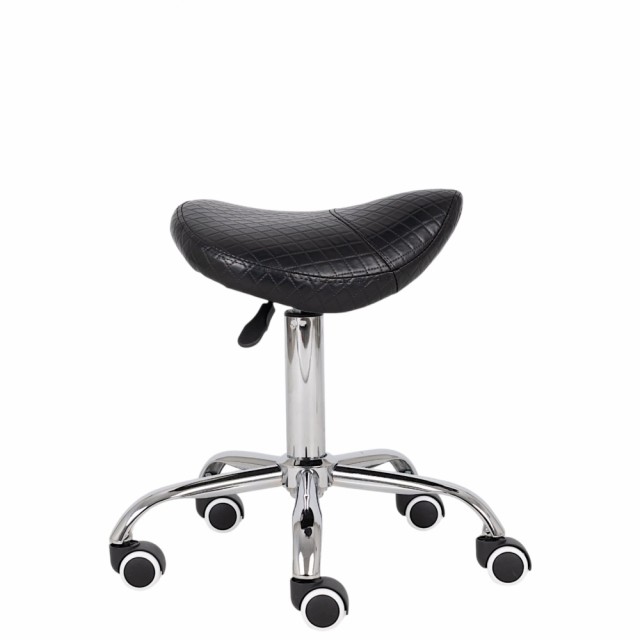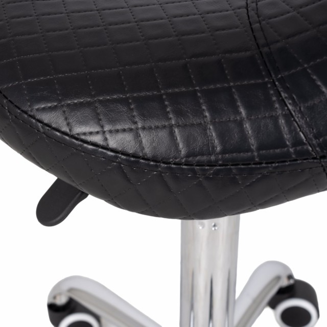 En ergonomisk svingbar stol med et profilert sete i form av en sal, praktisk høydejustering ved hjelp av en gassfjær og hjul. Sadelstolen støtter optimal fordeling av kroppsvekt og gjør det lettere å innta en naturlig sittestilling. Dedikert til massasjesalonger, fysioterapi, skjønnhetssalonger og frisører.