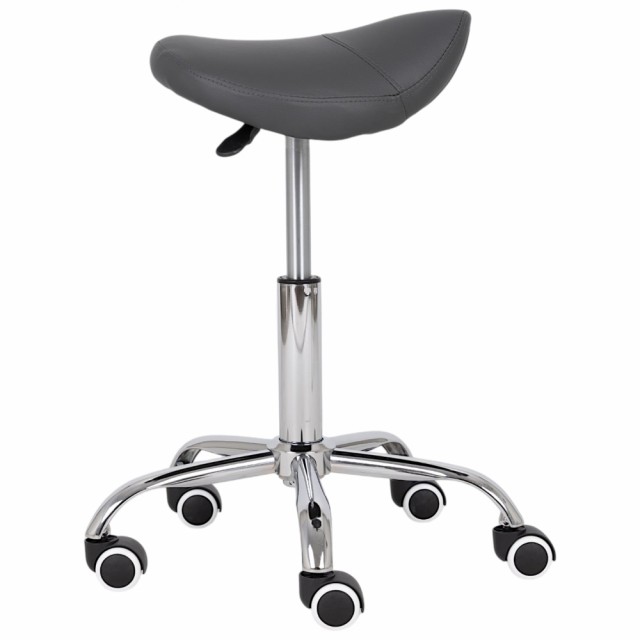 En ergonomisk svingbar stol med et profilert sete i form av en sal, praktisk høydejustering ved hjelp av en gassfjær og hjul.