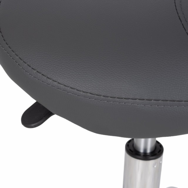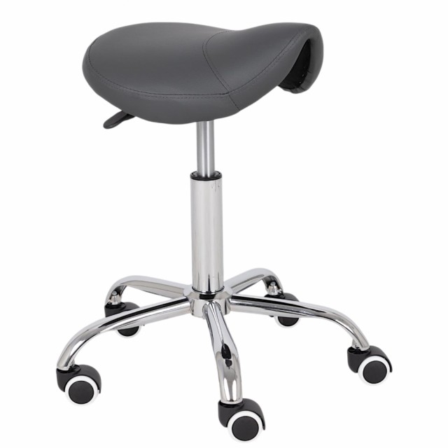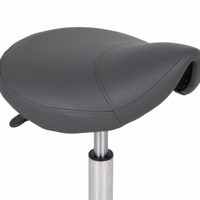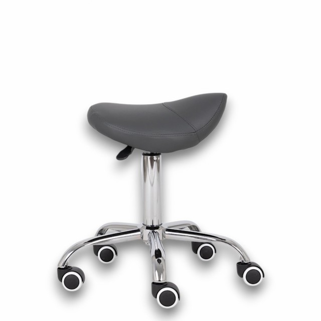 En ergonomisk svingbar stol med et profilert sete i form av en sal, praktisk høydejustering ved hjelp av en gassfjær og hjul. Sadelstolen støtter optimal fordeling av kroppsvekt og gjør det lettere å innta en naturlig sittestilling. Dedikert til massasjesalonger, fysioterapi, skjønnhetssalonger og frisører.
