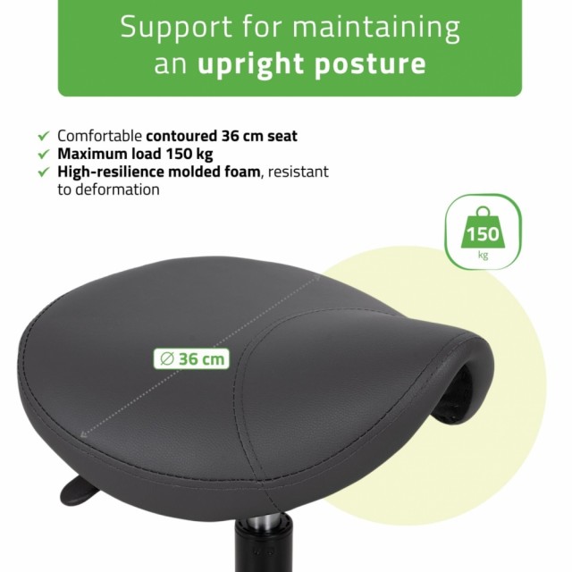 Sadelstolen støtter optimal fordeling av kroppsvekten og gjør det lettere å innta en naturlig og komfortabel sittestilling.