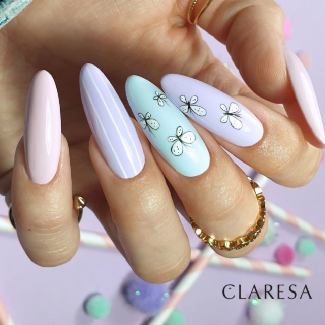 Hybrid /SoakOff Neglelakk fra Claresa® -Designet i Frankrike. Lakken har middels tett konsistens og høy pigmentering -som gir sømløs påføring, intens glans; og varighet opp til 3 uker. Må brukes sammen med base og top for Hybridlakk